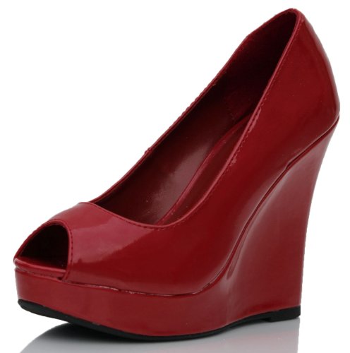 Red Peep Toe Platform Wedge has smooth lining interior, light padded cushion for added comfort. Platform 1" and 4 3/4"Heel.You will not be disappointed with